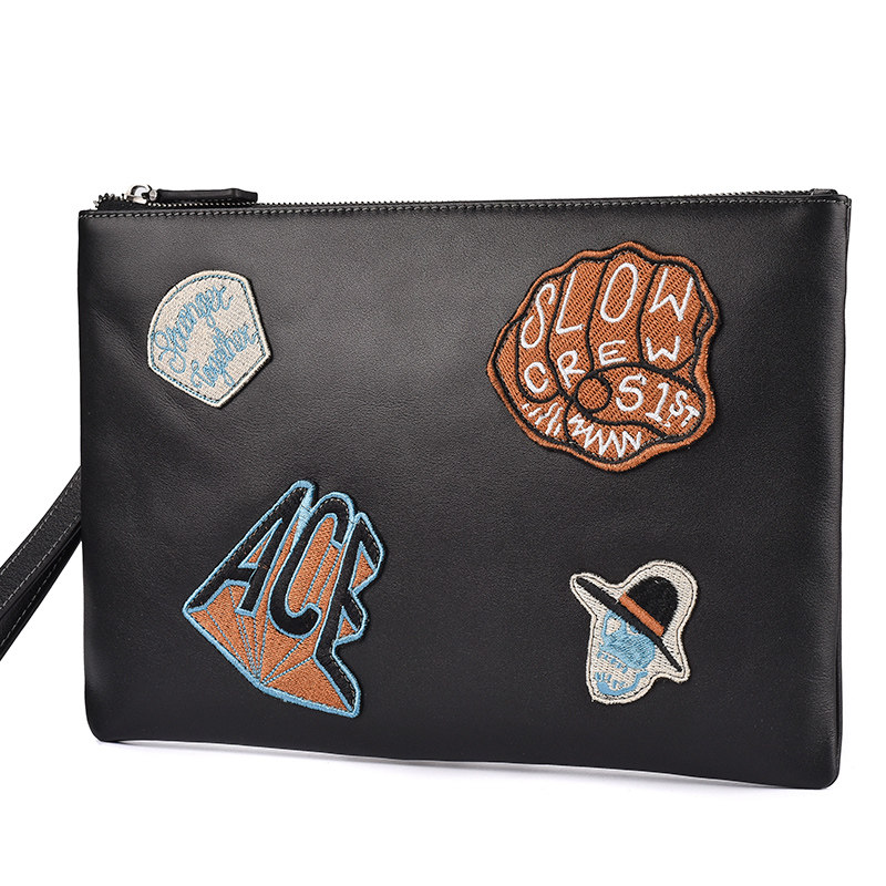Leisure Pace Taxis handbags Male Rap Series genuine leather youth hands with Baotou layer Bull Leather Envelope bag Large-capacity mobile phone bag