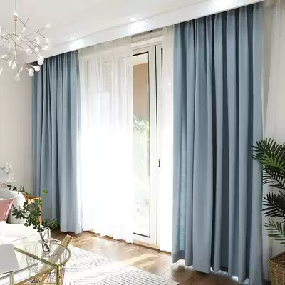 Curtain linen fresh cotton linen Nordic Japanese simple light green light gray light blue living room floor to ceiling custom curtains