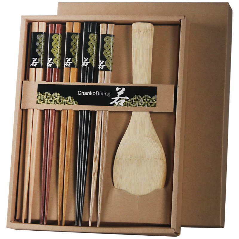Nine Earth Solid Wood Chopsticks Suit Home Brief About 5 Double Home Solid Wood Bamboo Environmental Rice Spoon Cutlery Combination Gift Box Dress-Taobao
