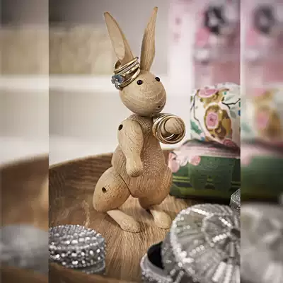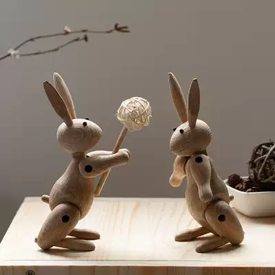 Rabbit puppet ornaments creative expression Ring Ring frame support wooden ins Nordic decorative rabbit year zodiac gift