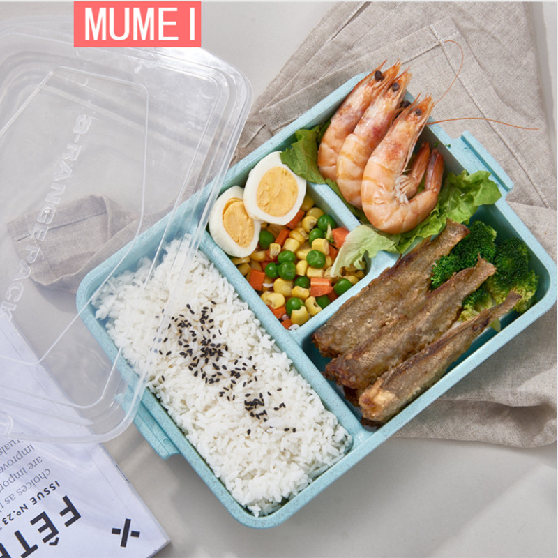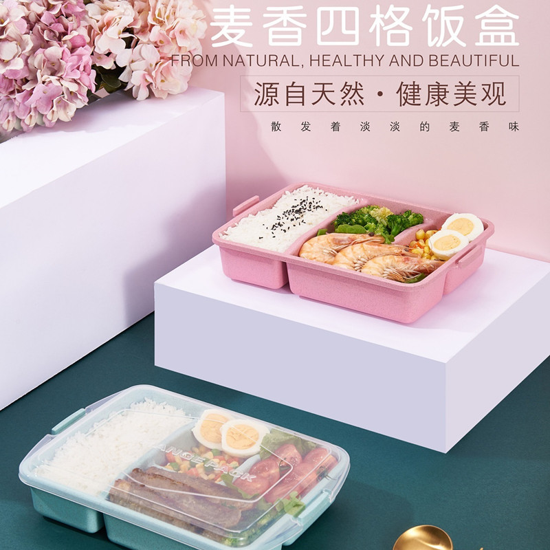 Wheat Straw Lunch Box Lunch Box Freshness Box 4-G Separation Student Microwave Oven Dining Box Square Japan-style Sealed Case