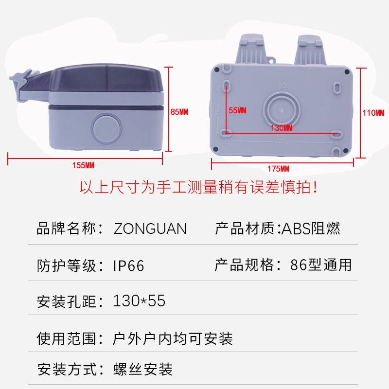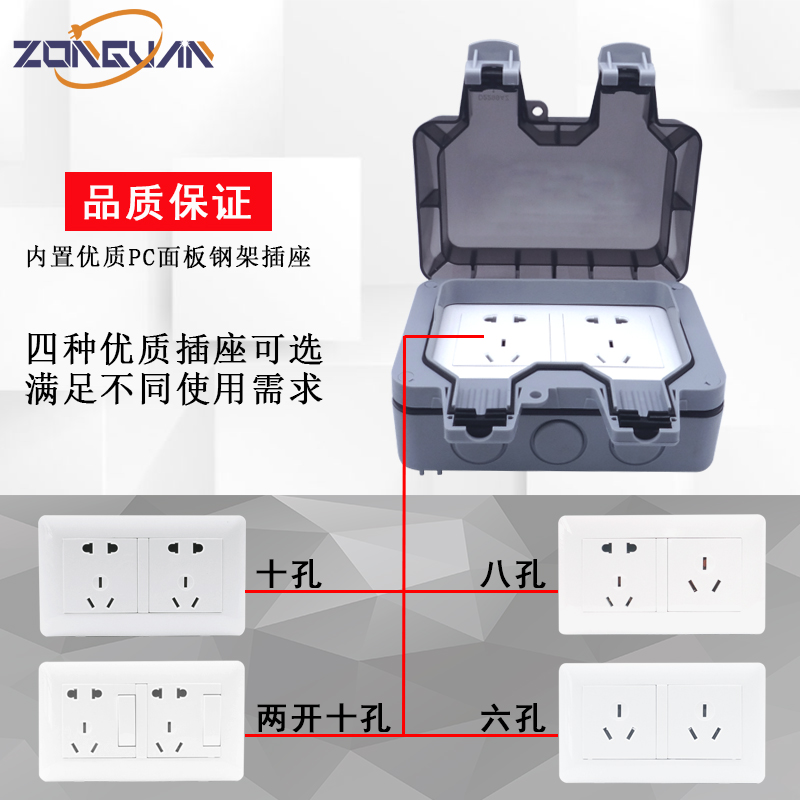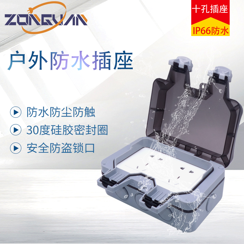 New IP66 outdoor waterproof power socket box national standard switch ten-hole open bathroom rainstorm 10A16A