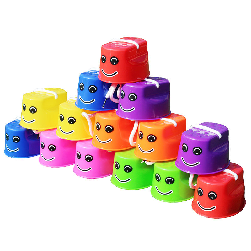 Smiley face stilts (yellow) a pair of smiley face stilts (blue) a pair of laughs (red) a pair of smiley face stilts (orange) a pair of smiley face stilts (pink) a pair of smiley faces stilts (red)