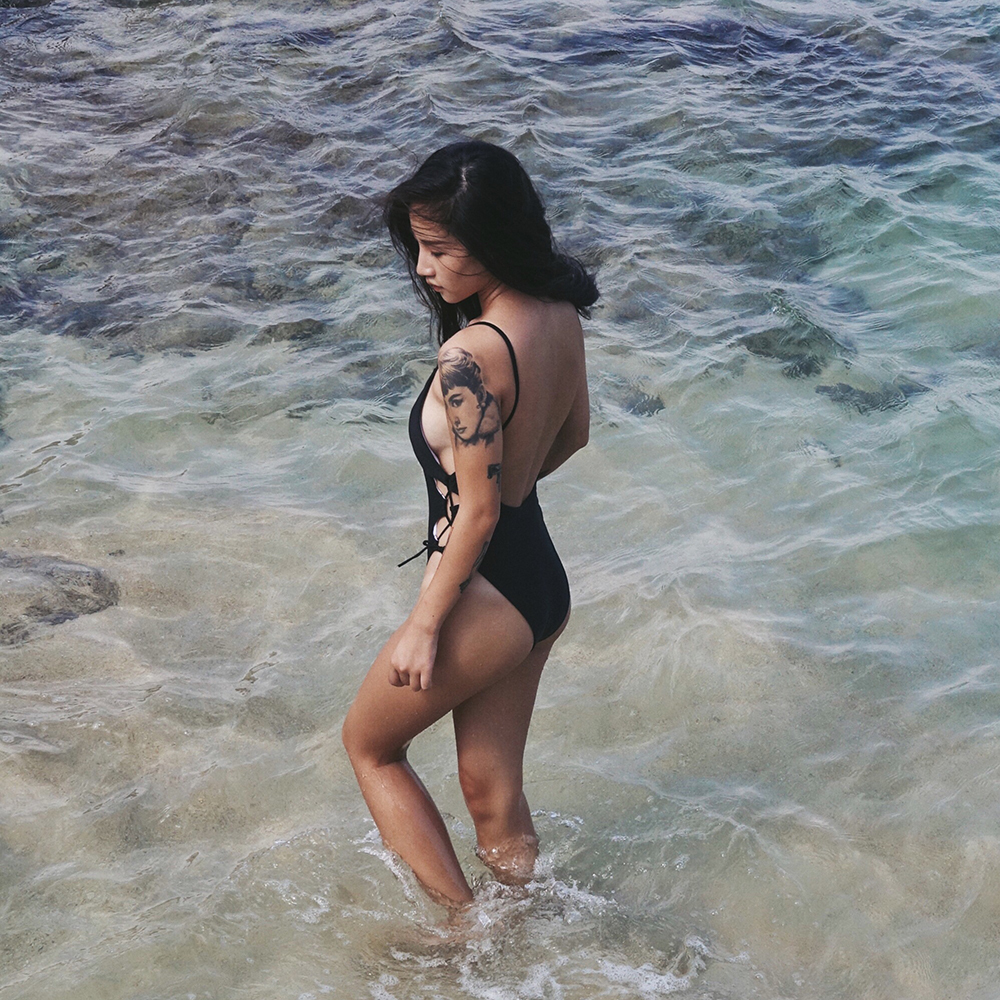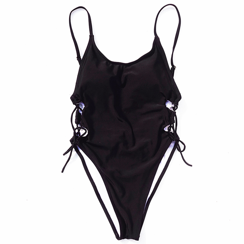 European and American bikini junction swimsuit female retro - high fork black sexy large open back with a slim - wear woman