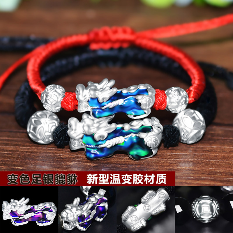 Natural obsidian temperature change of color bracelet female beads string of pure silver red rope couples Naturally life rabbit male jewelry