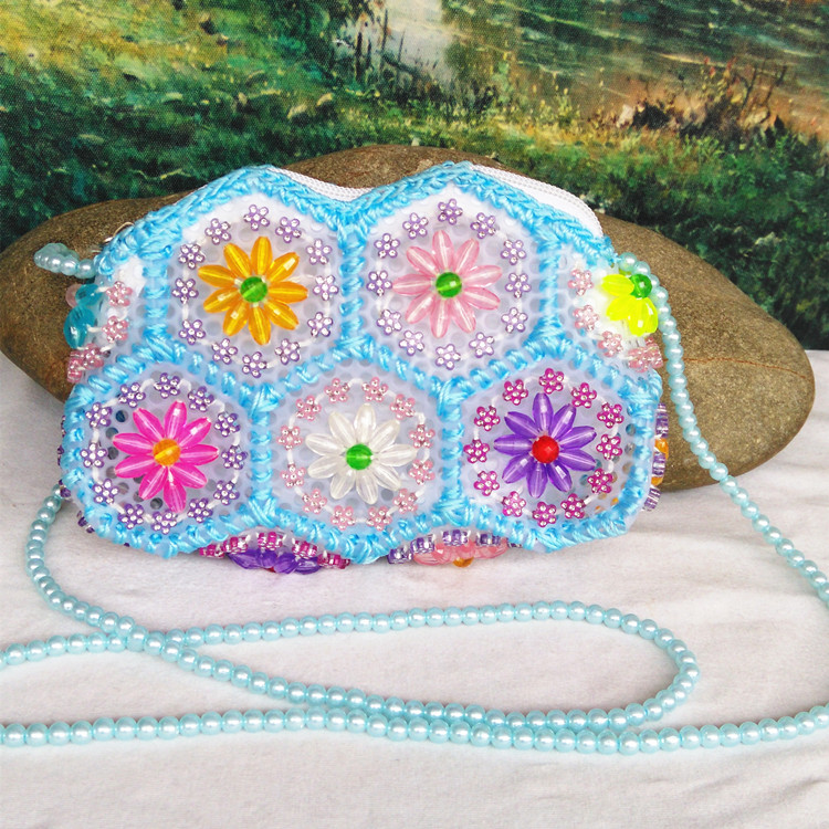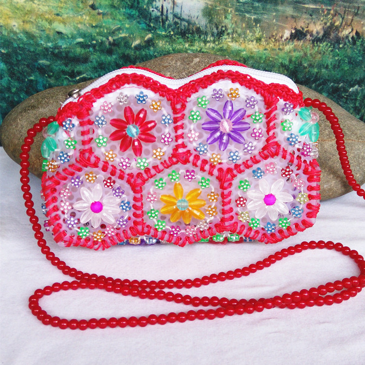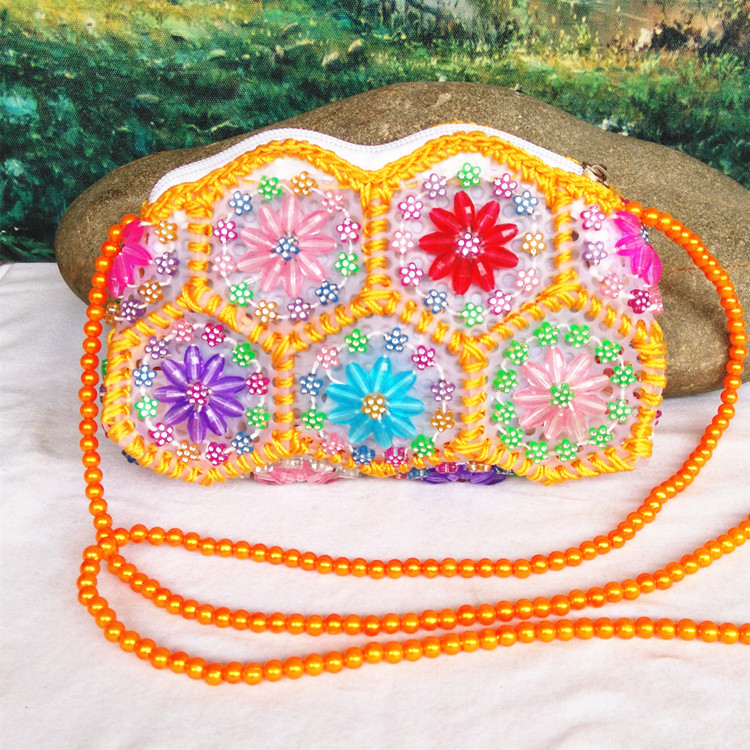 Ethnic retro hand-woven parquet bag casual bag threading diagonal shoulder bag mobile phone bag zipper coin purse