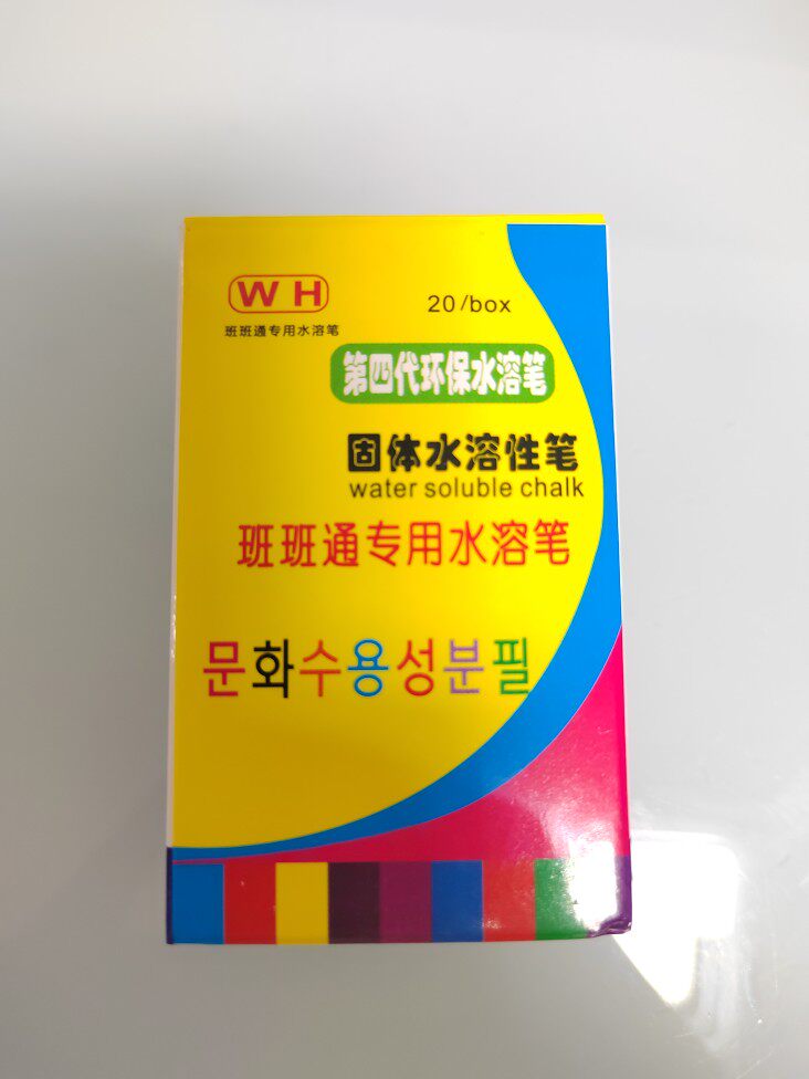 1 box of white chalk, 1 box of colored chalk, 1 box of colored chalk, 1 box of pen cover