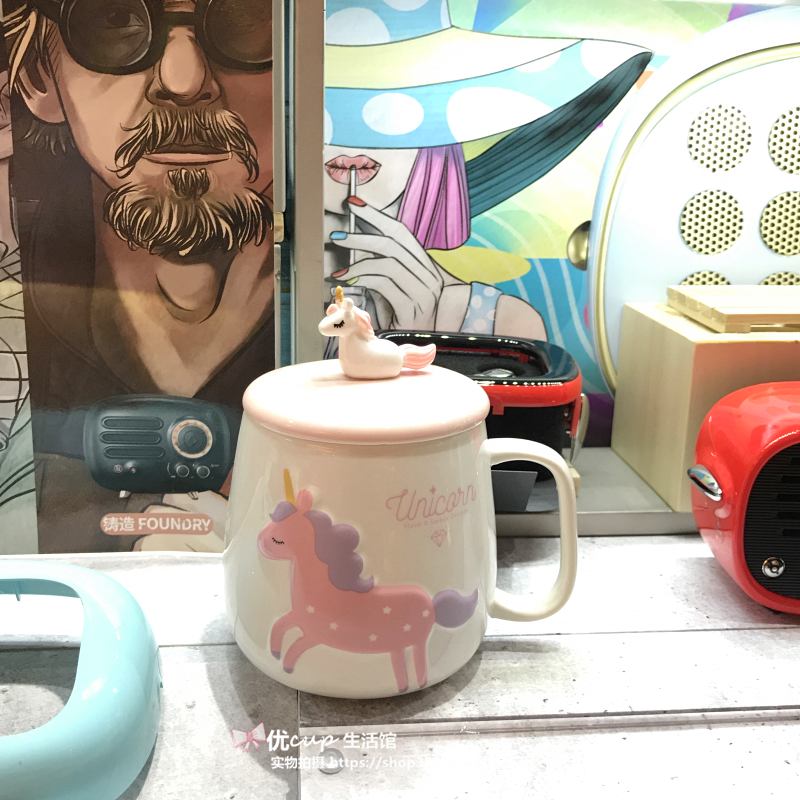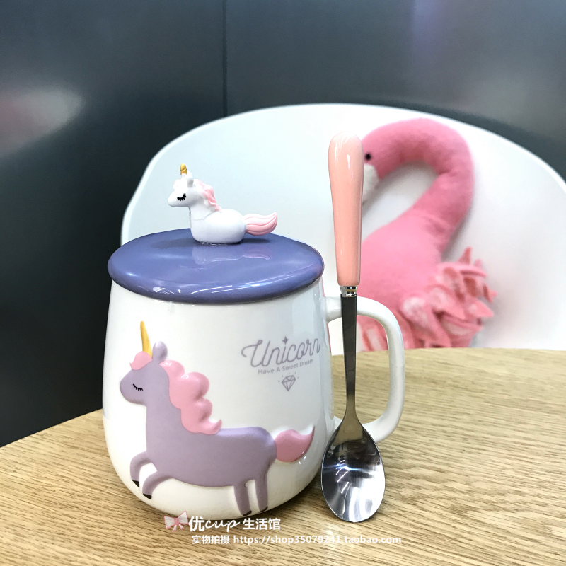 Day Ensemble Cute Creative Unicorn Ceramic Cup Swivel Trojan Milk Coffee Cup Pink Young Girl Student Mark Cup