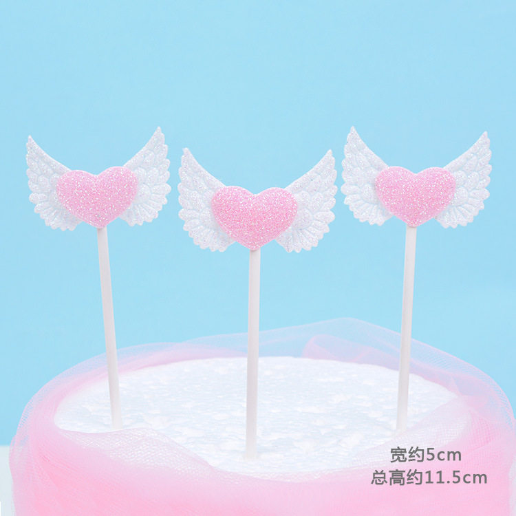 New cake decorated with the wings of angels bright pink love birthday wedding dessert insert