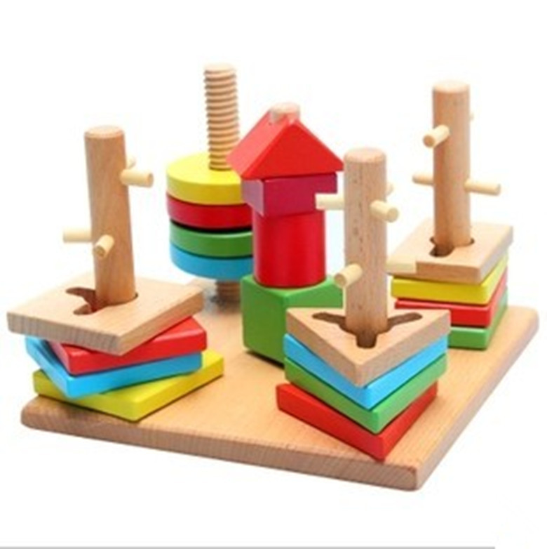 Flower shape set column five-pillar building block set column set ring game macaroon set column macaroon elephant set column ordinary four-pillar ordinary four-pillar worm wear apple wooden set ring Xiao Mao set ring panda set ring puppy set ring