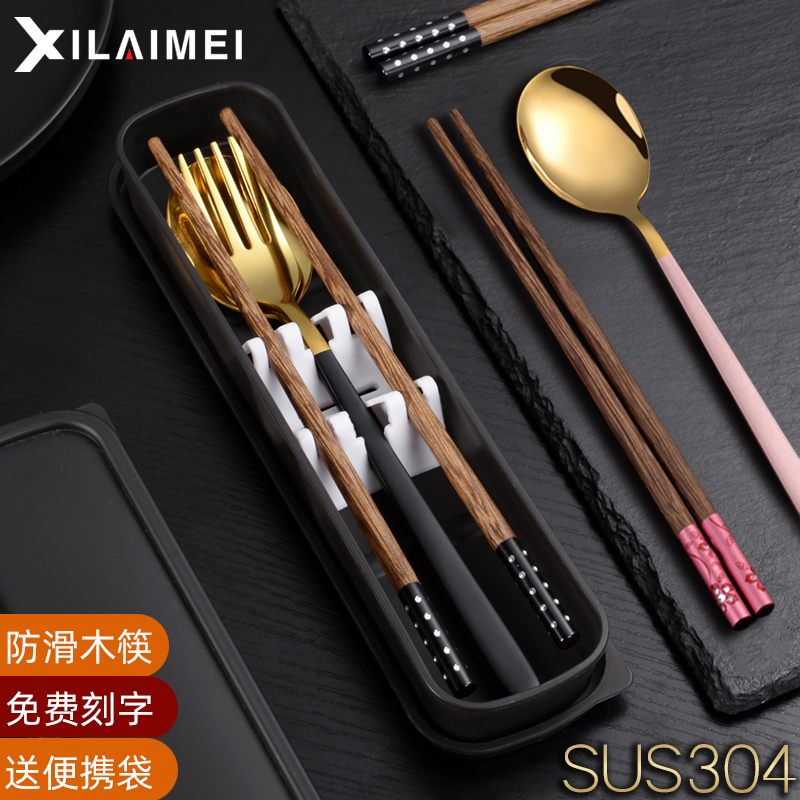 Natural color steel chopstick spoon (send portable bag box) Natural color steel chopstick fork (send portable bag box) Black silver steel chopstick spoon (send portable bag box) Black silver steel chopstick spoon