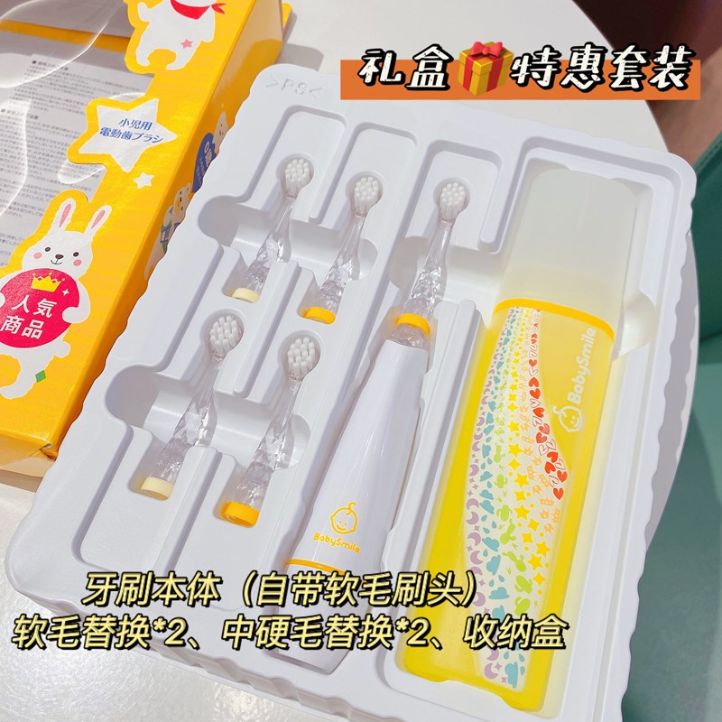 Japan babysmile Baby children's electric toothbrush Baby colorful light Sonic soft hair baby tooth brush replacement brush head
