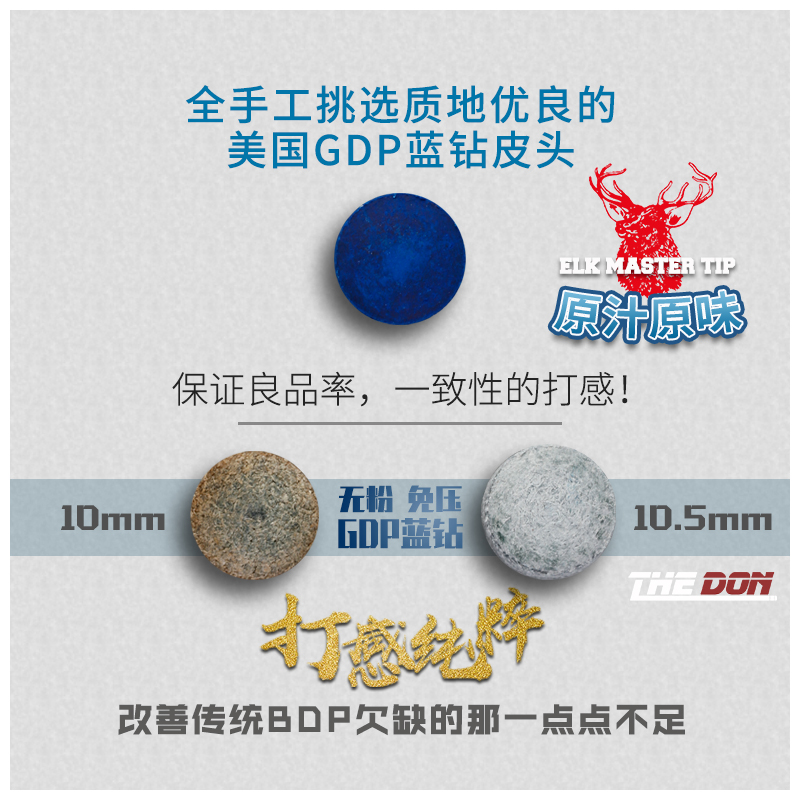 Imported powder-free blue diamond leather head deer head Super BDP Snooker club leather head black eight-bar head supplies accessories