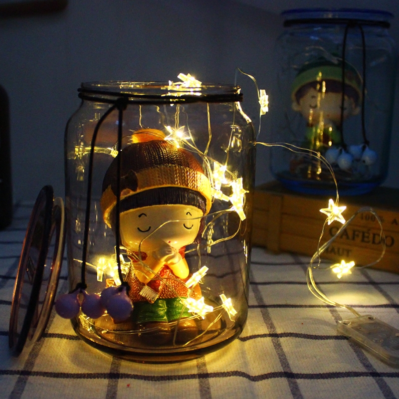 Creative DIY full Star Star Firefly copper wire lamp string Christmas tree Wish Bottle Room Decorated with button-containing battery