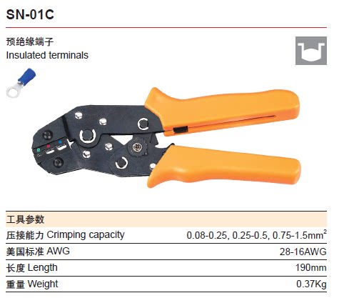 Huasheng Tool Pre-insulated terminal pressure clamp SN-01C (0 08-1 5MM2)