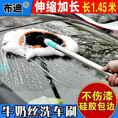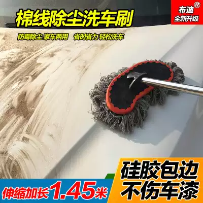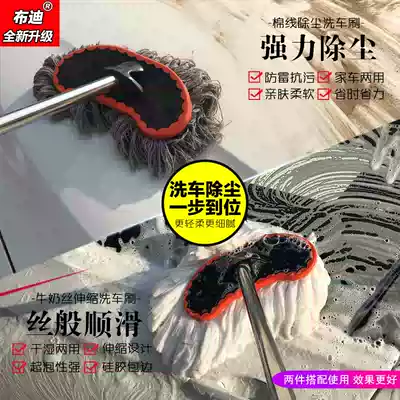 Car wash brush long handle telescopic pure cotton line car wash mop milk silk soft hair dust removal special waxing mop dust removal set