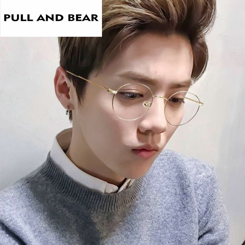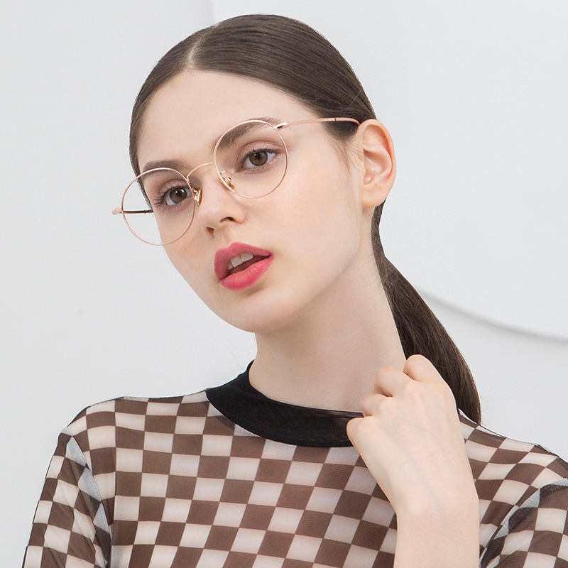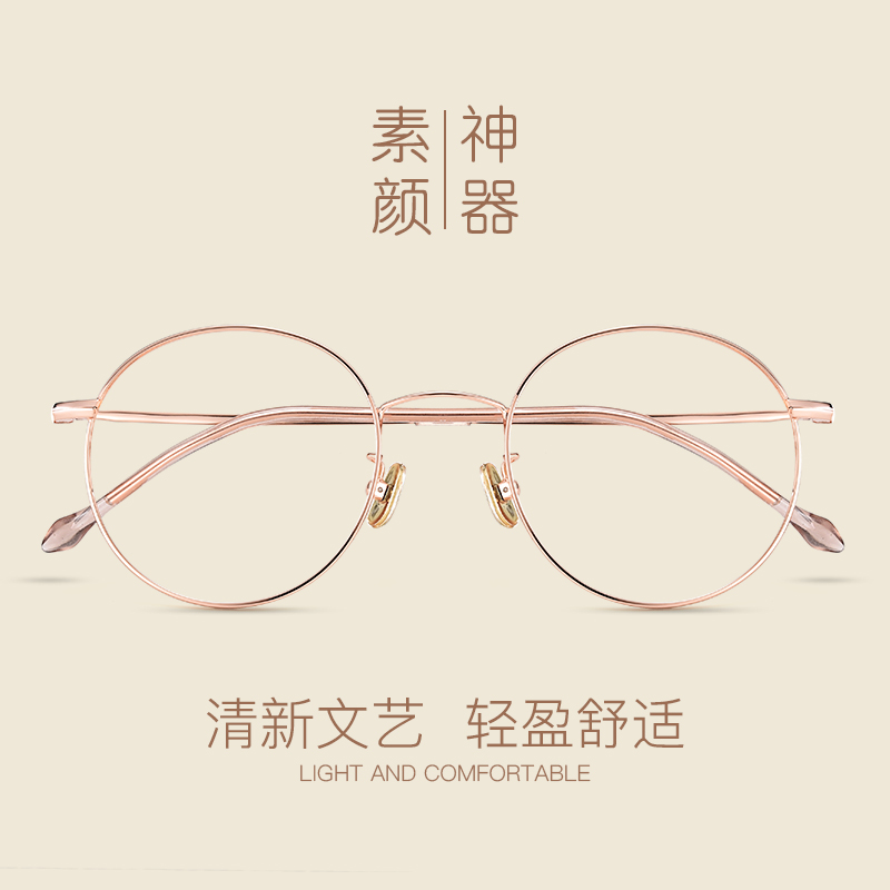 Can be equipped with computer eye protection glasses myopia men's finished gold edge retro glasses frame female Korean wave round face flat lens