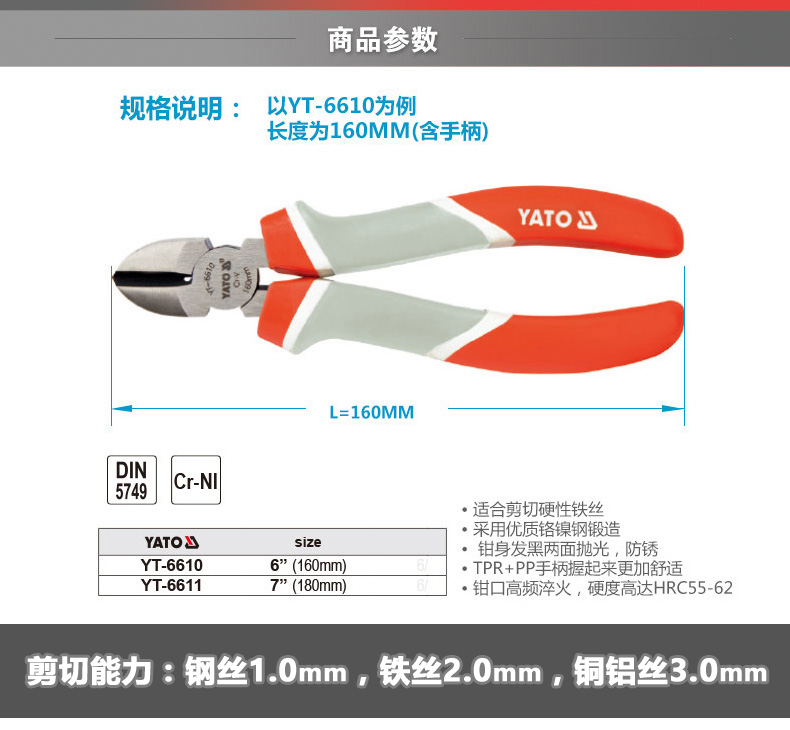 Yiertuo industrial grade oblique mouth pliers 6 inch standard wire cutting pliers Water mouth pliers Electrician 7 inch oblique mouth pliers