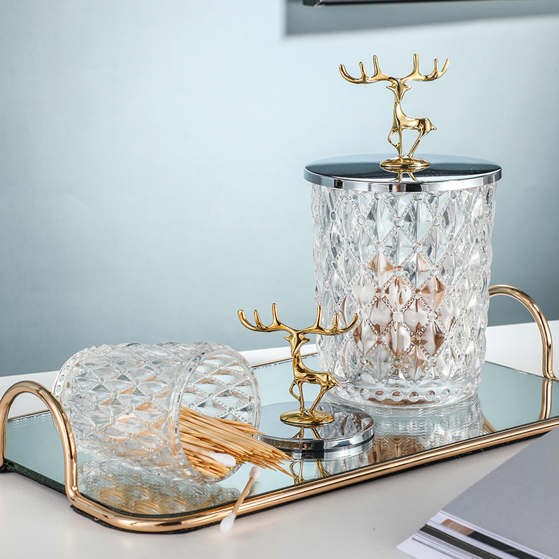 Household toothpick box High-grade personality creative cotton swab box Light luxury with lid Toothpick tube net red floss desktop storage box