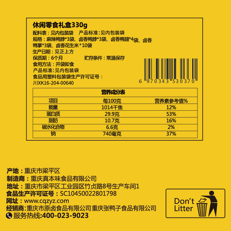 Zhang duck gift box Spicy duck neck duck wings duck paw casual snacks spiced non-spicy roast duck braised snack gift pack