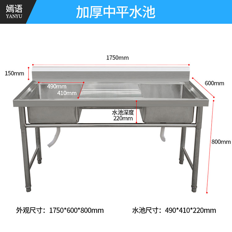 Commercial stainless steel sink drain pool with platform bracket sink vegetable basin fish killing table Workbench