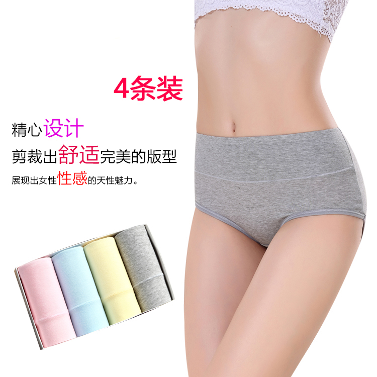 4 dress ladies' underwear cotton mid-waist No marks big code Tiglutes cotton fabric Triangle pants head