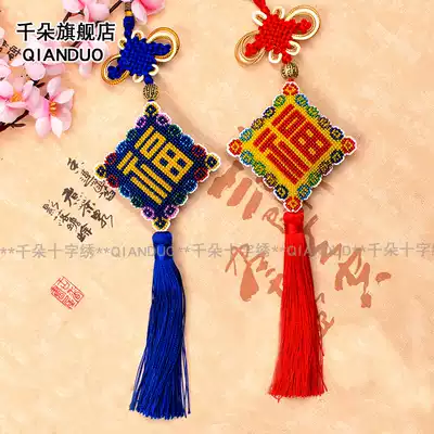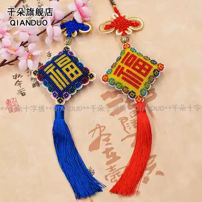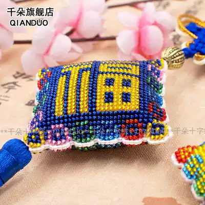 New thousand flowers cross-stitch bead embroidery material bag blue Pingan Fu car decoration car pendant simple handmade small pendant