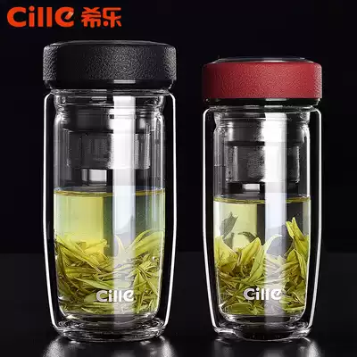 Xile thickened double-layer glass men's portable water cup women's insulation with lid large-capacity cup Household tea cup