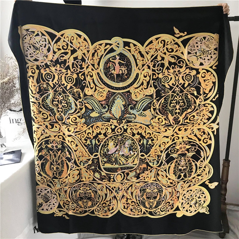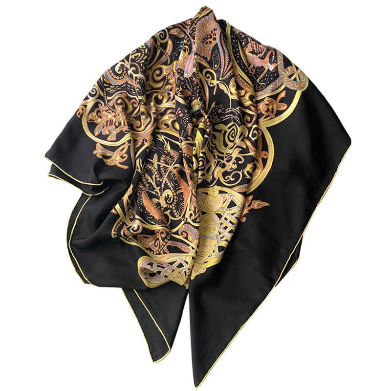 Silk scarf shawl female spring and autumn European and American court wind ancient hand-edged silk scarf generous towel