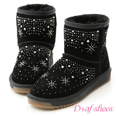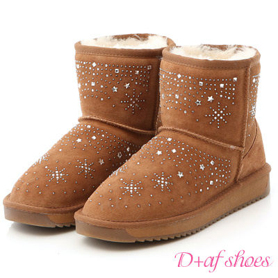 D AF FrozenSnowflake rhinestone leather short tube snow boots*Apricot