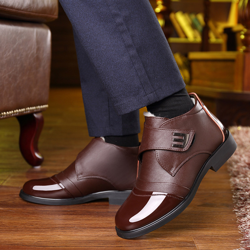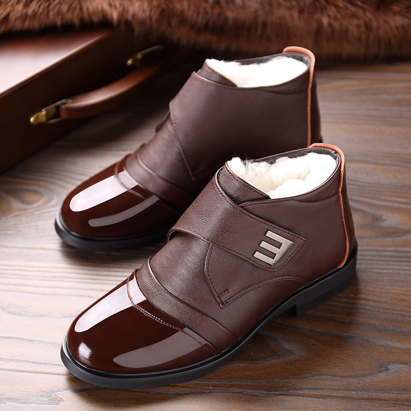 Cotton shoes men's winter plus velvet warm thick wool casual high-top shoes leather business formal wear non-slip cotton boots tide