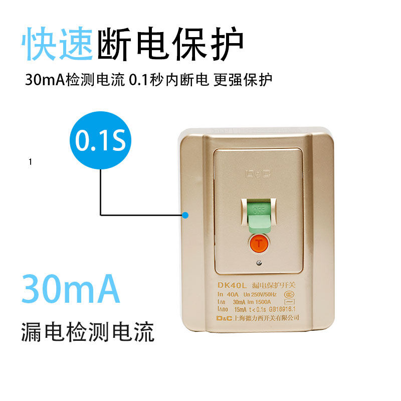 Shanghai Deli West switch air conditioning water heater leakage protector household leakage protection gold type 118 32A switch