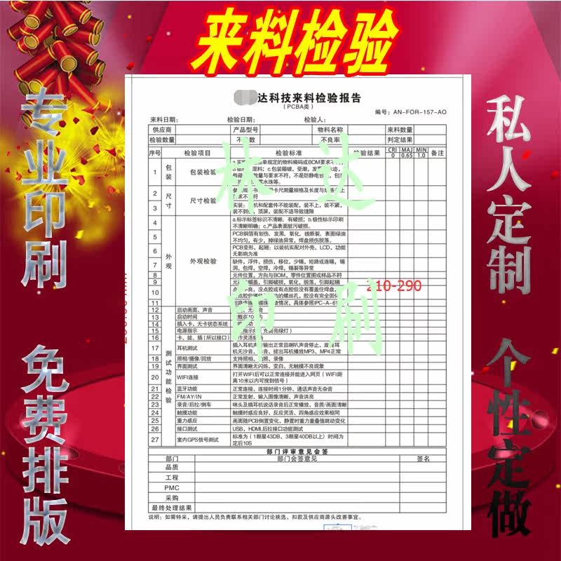 Come feed inspection records Table ding Do print A4 Inspection record Form attendance list Sheet No Carbon Rewritten Union Single