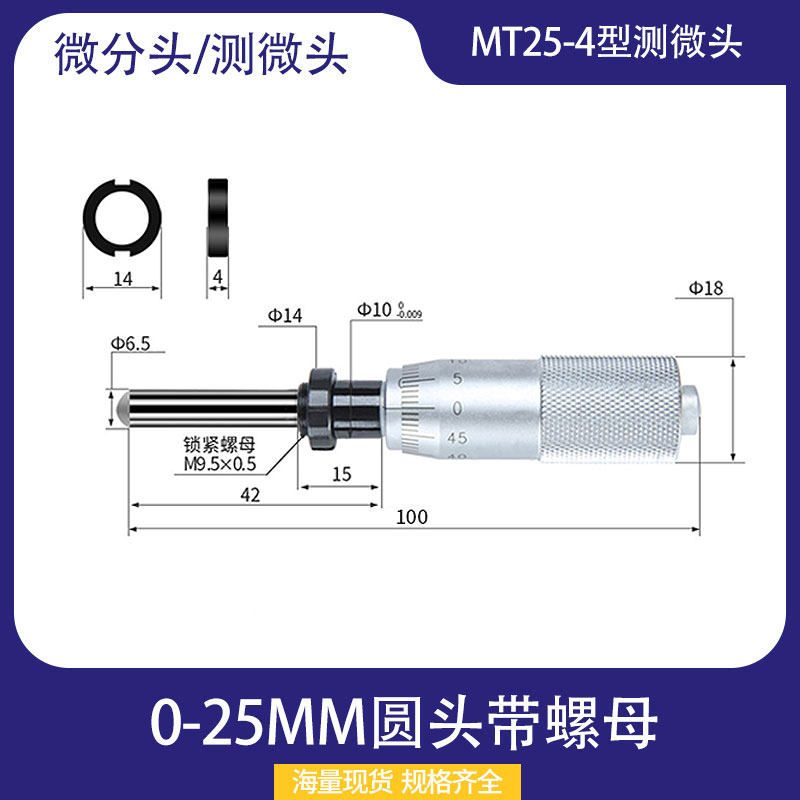 MT25-4 type micrometer ball head round head spiral micrometer head 0-25 MCLN12 with thread stroke 25 minutes