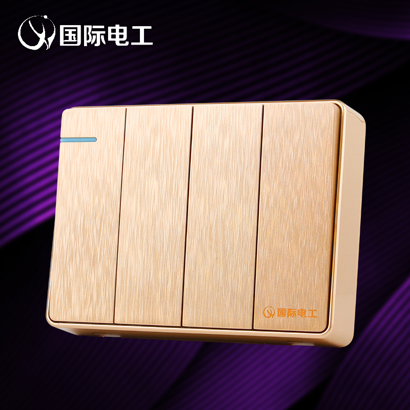 International Electrician Ming Fit Four Open Single Control Switch Wire Drawing Champagne Gold Panel Ultra Slim Socket Home Four Single Couplets