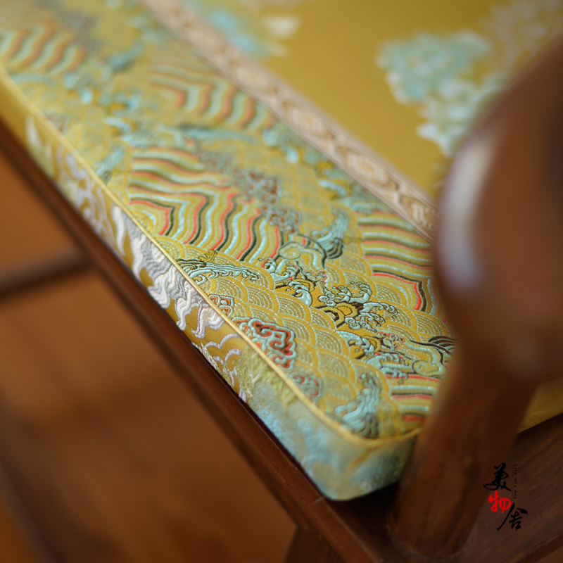 Goose Yellow Blue Peony New Chinese Style Dining Table And Chairs Mat Tea Room Tea House Chair Cushion Red Wood Chair Taiki Chair Cushion Cushion Sponge Cushion