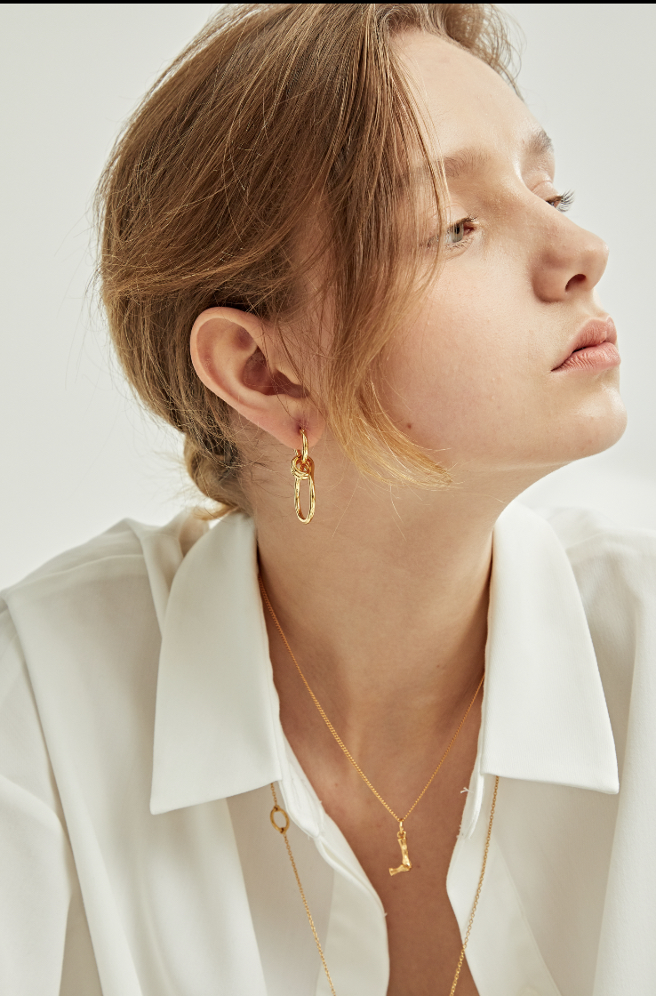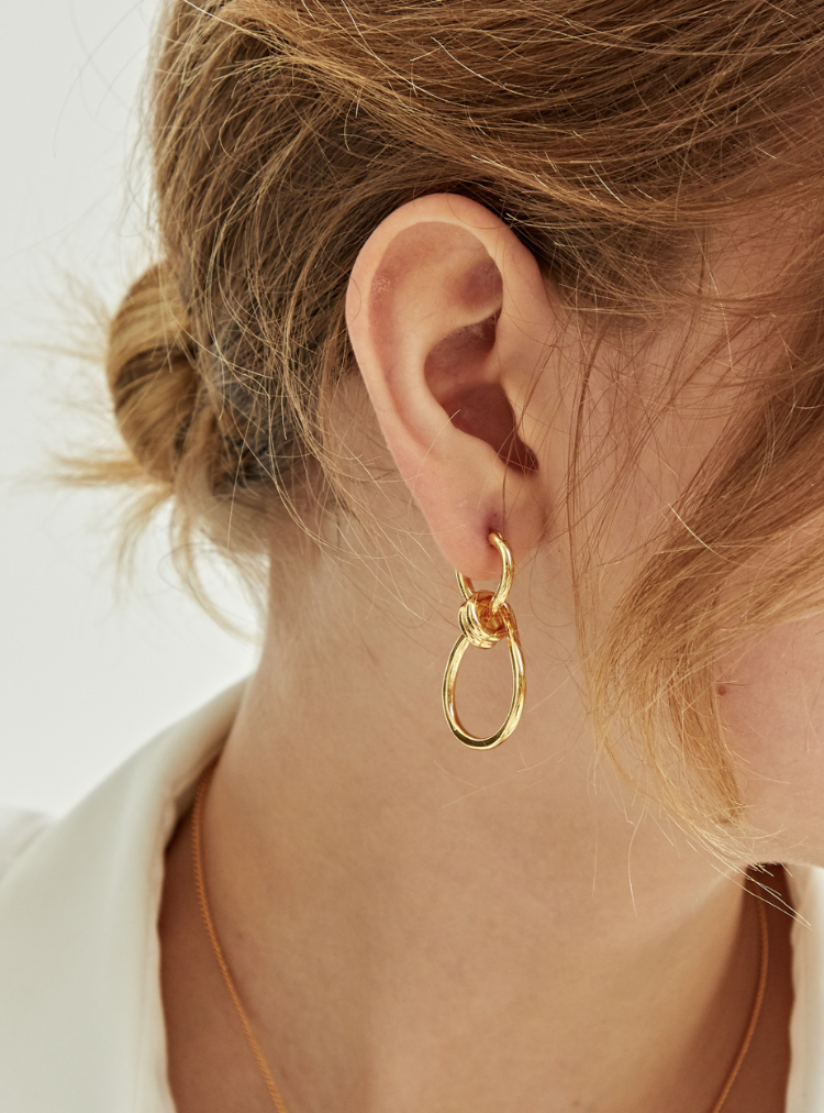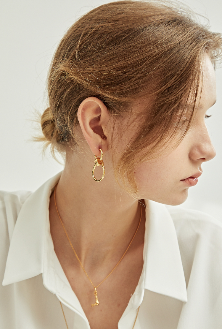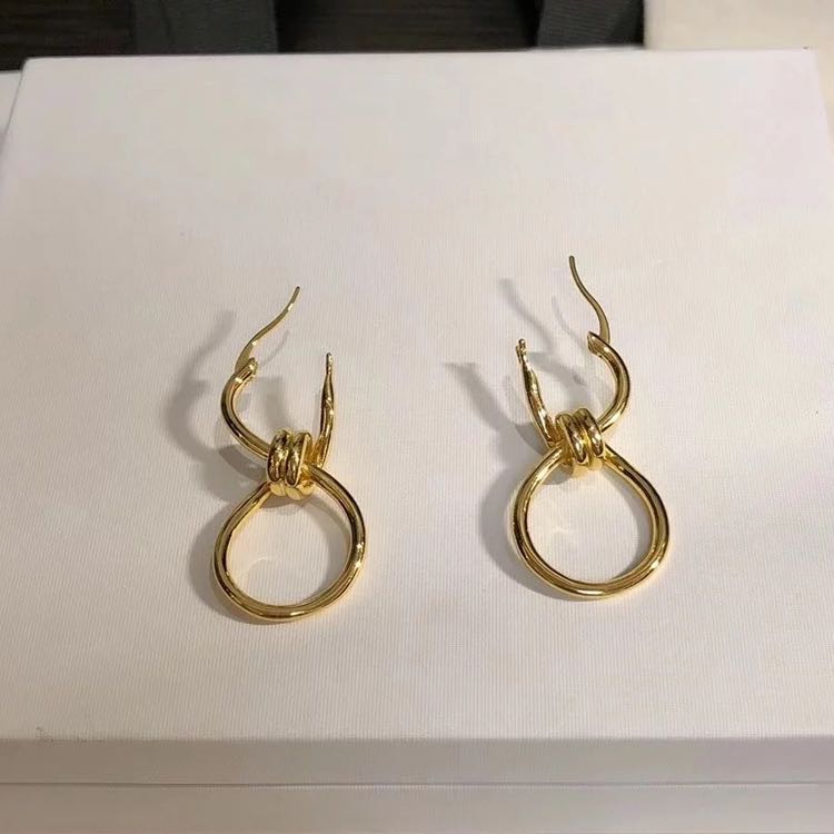 Big card designer senior sensfeel version temperament net red 18k gold plated anti-allergy ring knotted earring earrings woman