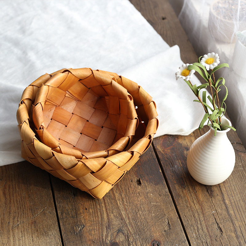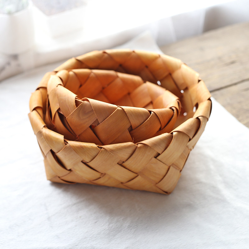 Wood weaving and basket basket basket - wrapped Japanese hand - made wood sheet collects 2 sets
