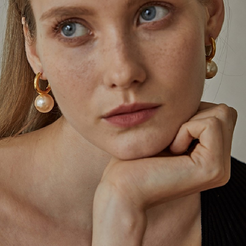 European and American French style high-end design exaggerated temperament simple big pearl ring earrings earrings niche indifferent style female