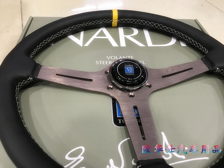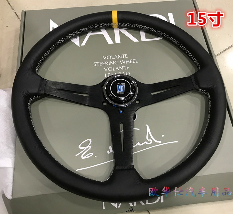 15-inch universal steering wheel genuine leather white line 15 inch racing steering wheel competitive universal party to disc 38cm