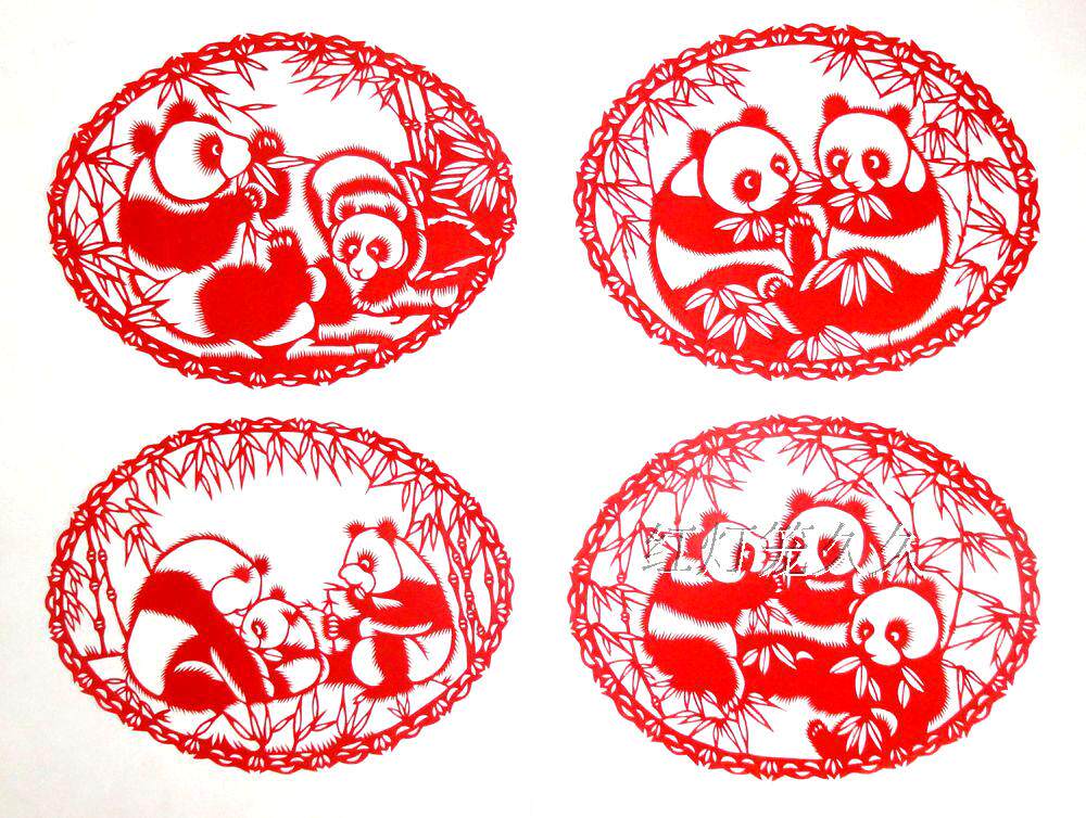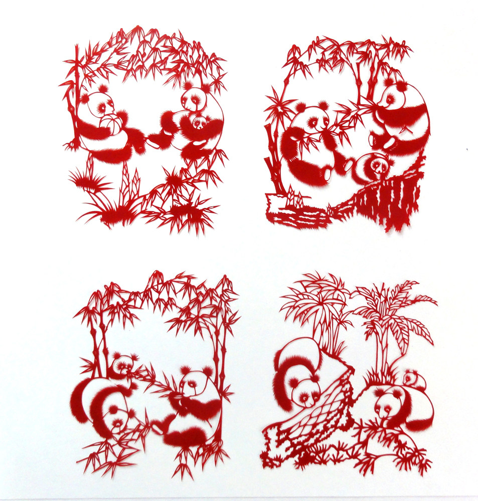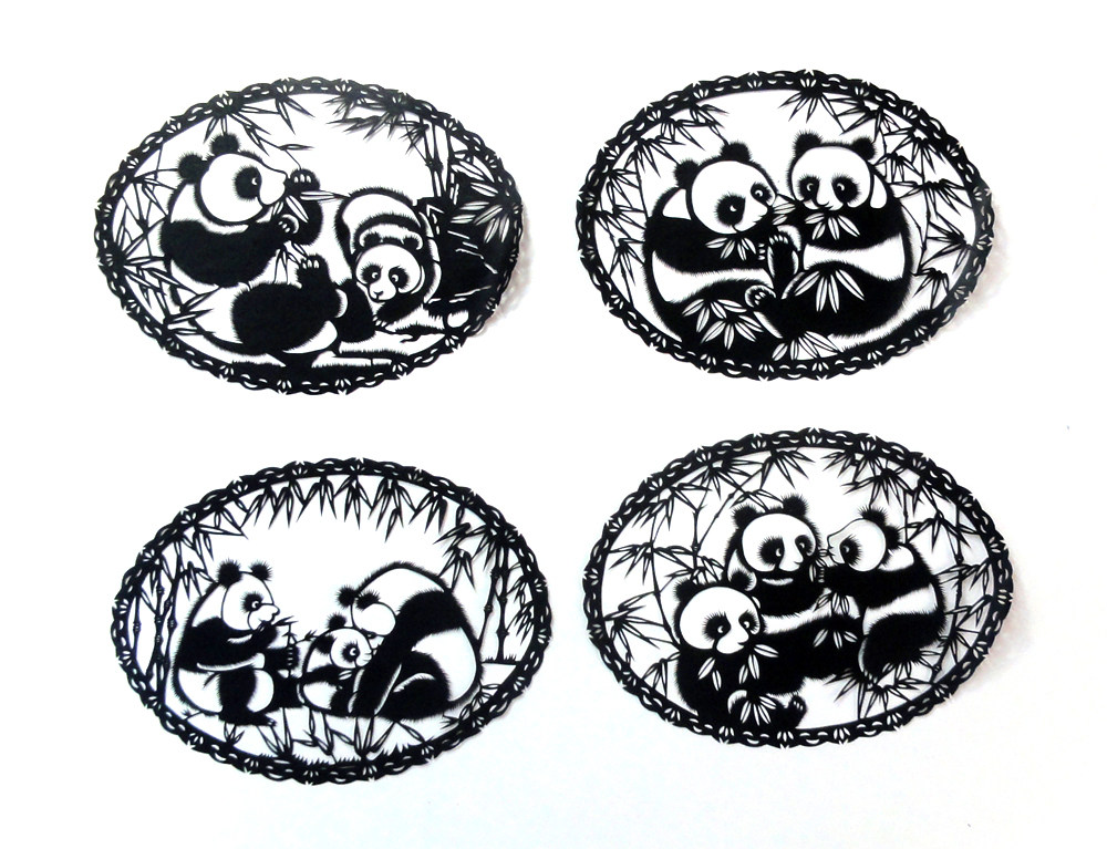Handmade paper-cut window set black panda 19*15cm classroom birthday gift to send to my friend the gift