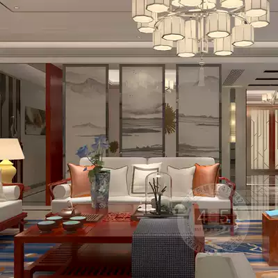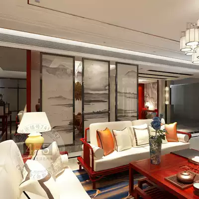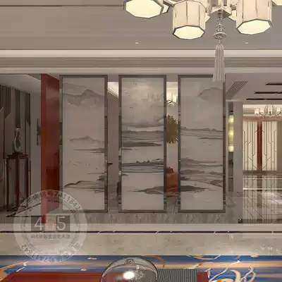 New Chinese style freehand ink screen partition wire glass dry and wet separation custom landscape semi-transparent silk clip glue