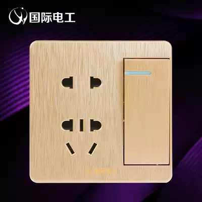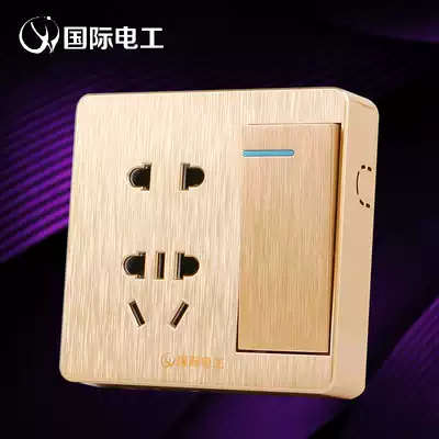 International electrician installation one open single control five-hole seven-hole nine-hole socket power supply with switch champagne gold drawing 5-hole