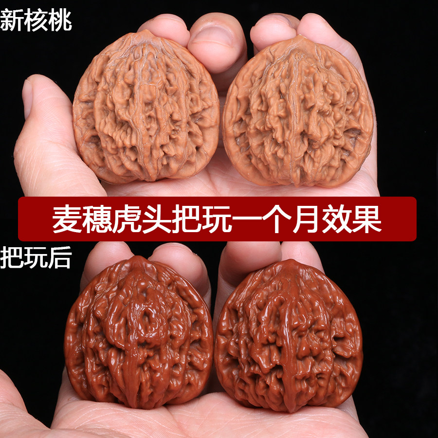 Wenwen Walnut Hall on tiger head hemp walnut play old tree lion Tiger hand plate walnut pair of wheat ear tiger head Walnut