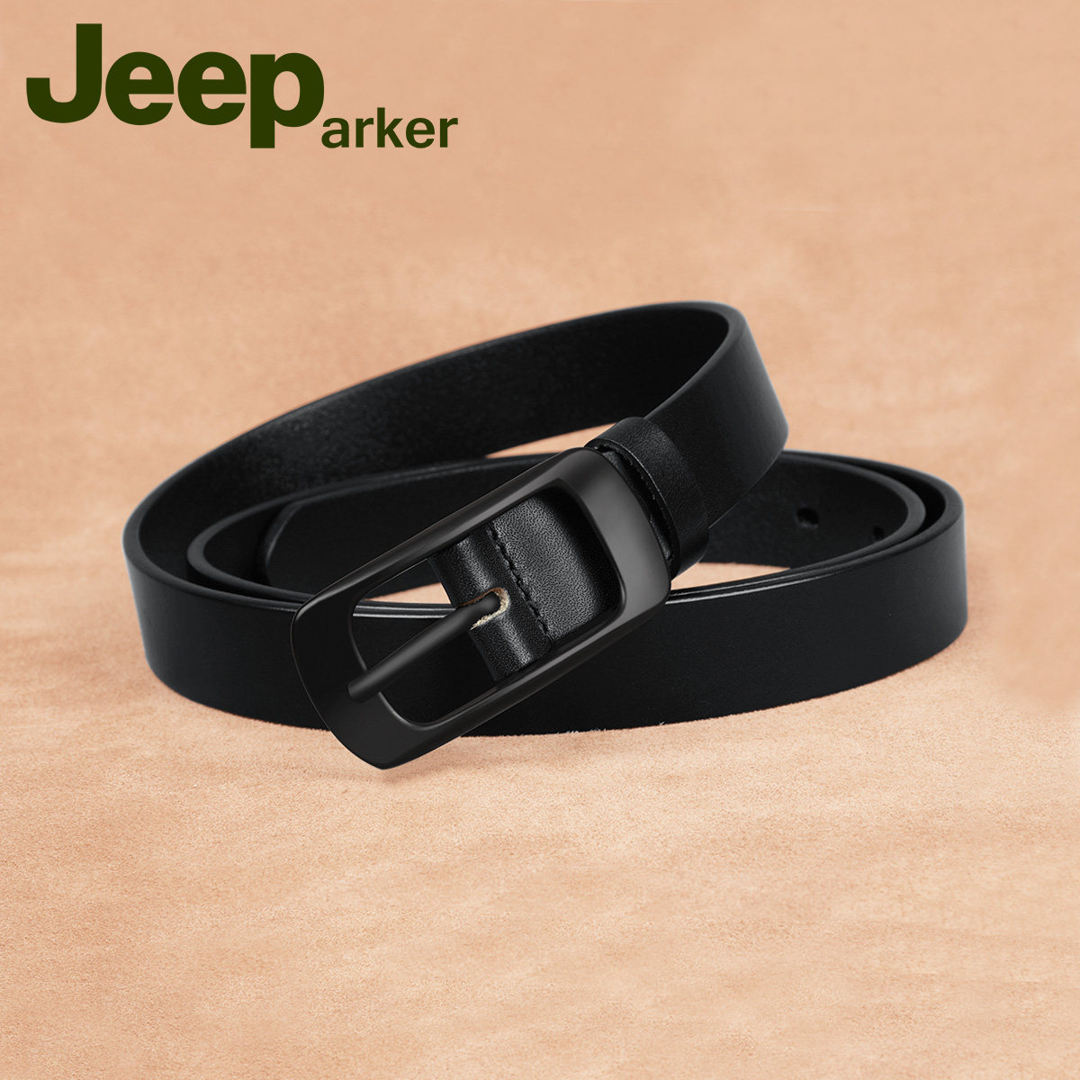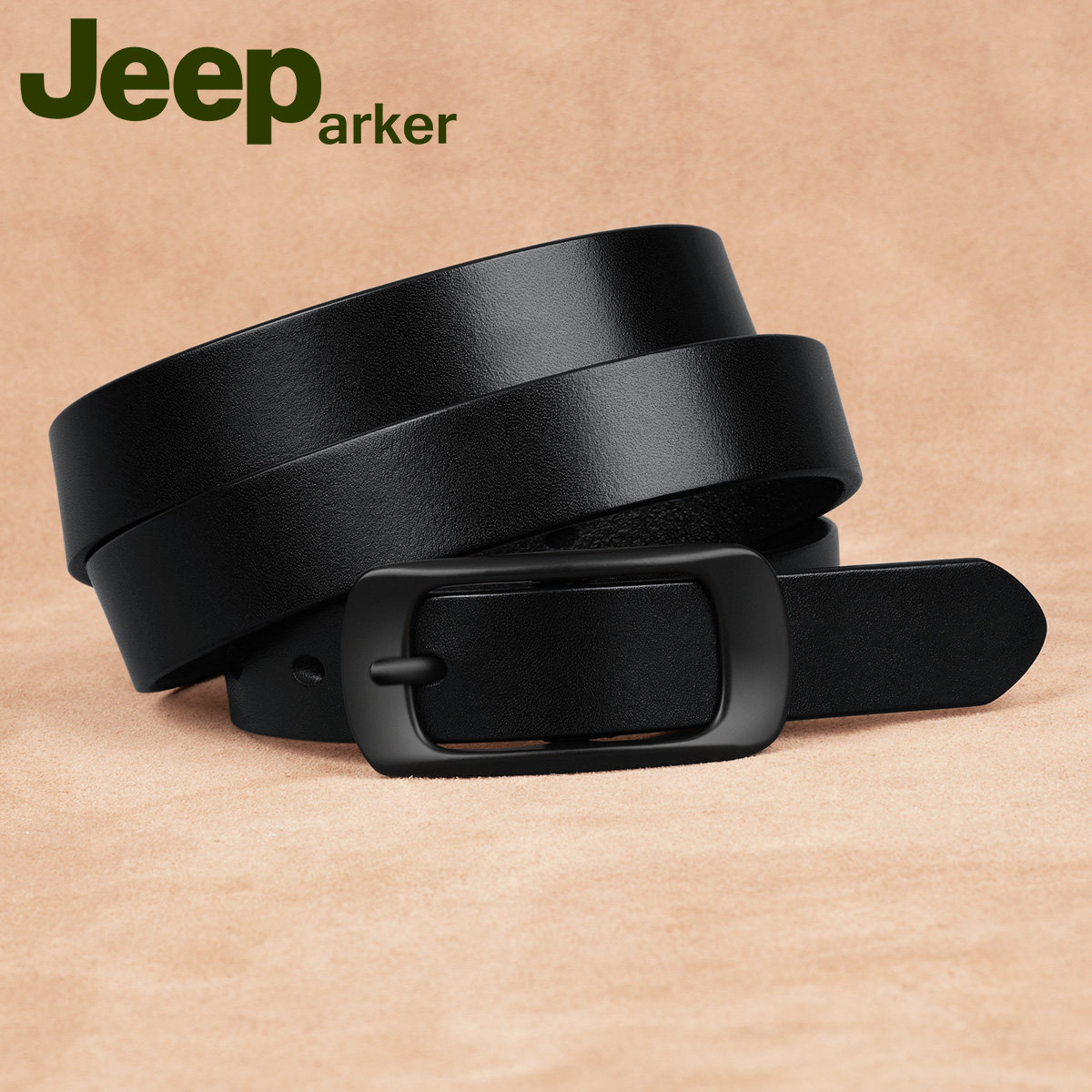 Head Layer Cow Leather Strap Genuine Leather Lady Casual Needle Button Fine Korean Version Black Girdle Girl Jeans