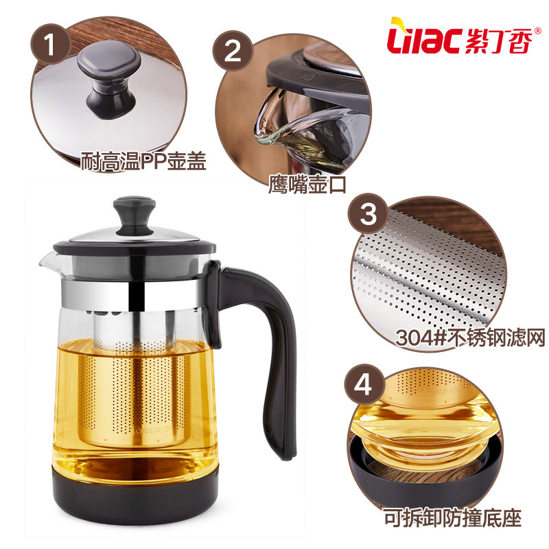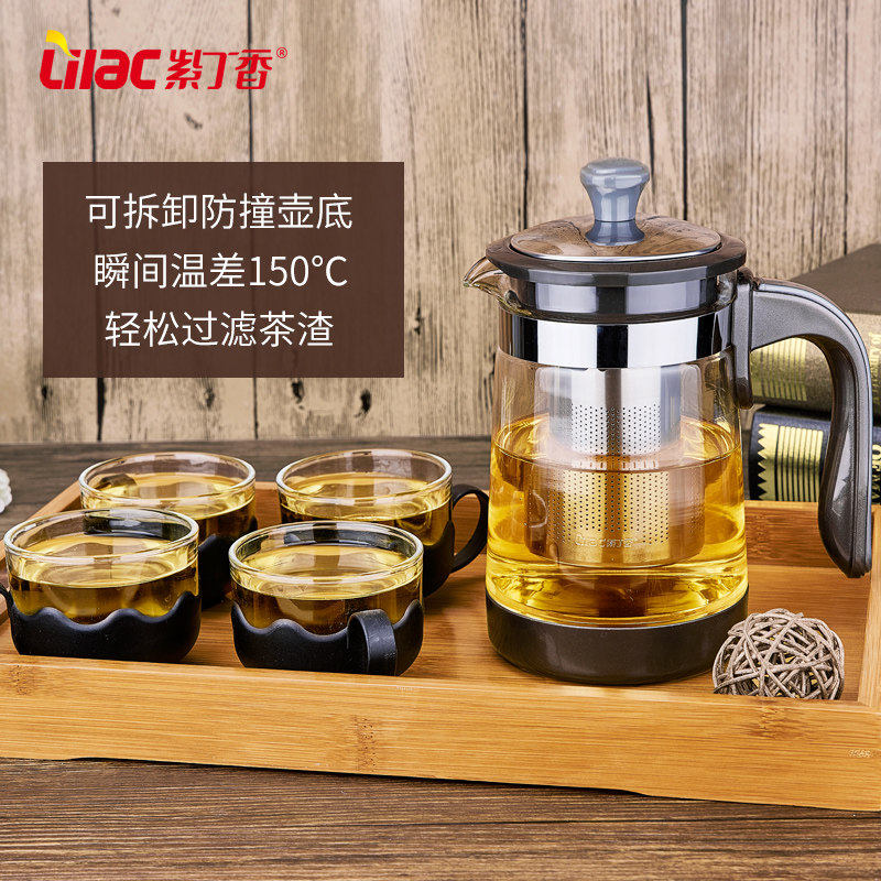 Lilac high temperature resistant glass teapot tea set stainless steel filter health pot office bubble teapot kettle set