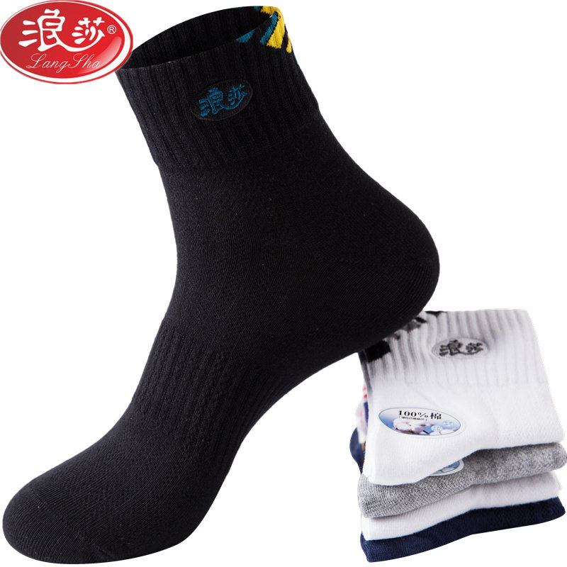 Langsha pure cotton men's socks autumn and winter mid-tube socks breathable and sweat-absorbing men's cotton sports socks winter stockings