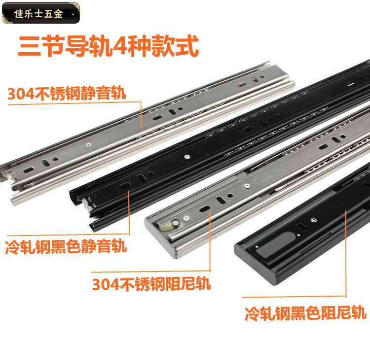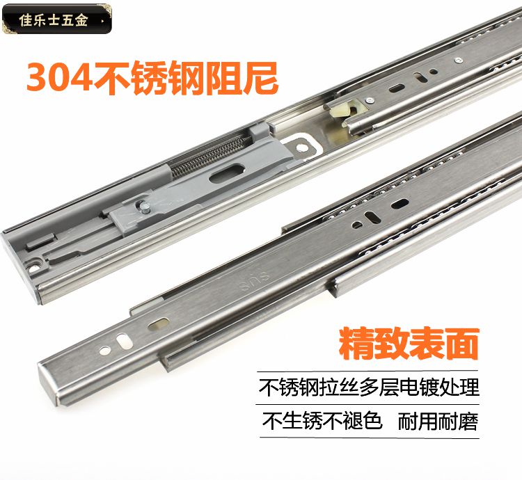 Canalese damping stainless steel pull-drawer rail chute three-section rail integral cabinet track mute buffer hydraulic slide