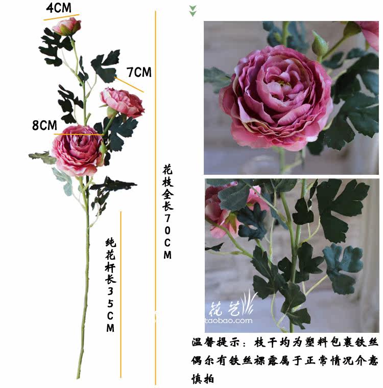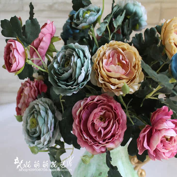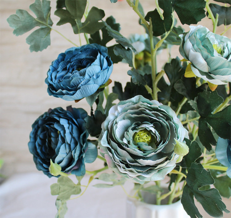 Simulation fake flower Three-head peony European-style Lulian retro Ancient Oil Painting Wedding photography Family placed floral decoration Silk Flowers