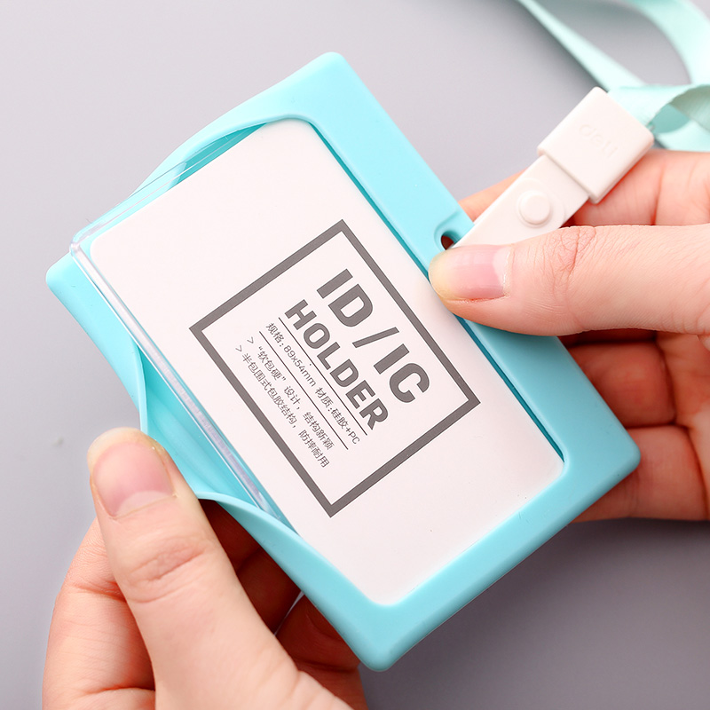 Powerful 8336 soft silicone color ID card with lanyard hanging chest student bus protective cover access guard factory card